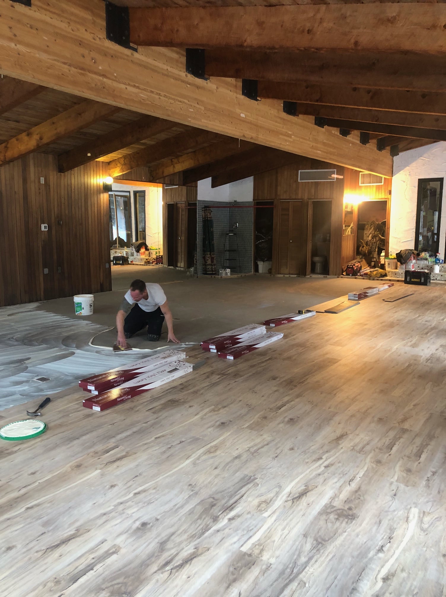 We helped them convert the old pool area by building a deck in and over the pool so they could create an indoor virtual golf area and large rec room creating a complete room of usable space.
